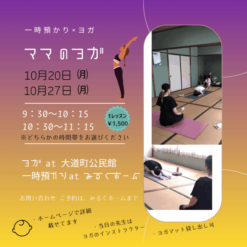 日々、頑張っているママだからこそ、ぜひ、ヨガで心身のリフレッシュを💛